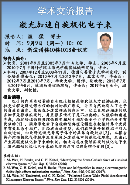 学术研讨报告:激光加速自旋极化电子束