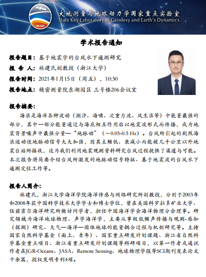 2021年1月15日凯发K8大地测量与地球动力学国家重点实验室学术预告