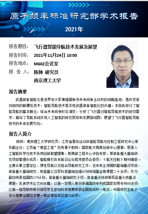 2021年11月24日凯发K8原子频率标准研究部学术报告