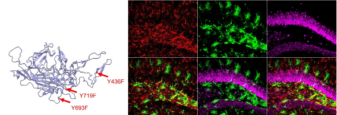 AAV病毒载体突变位点示意图及重组改造后特异性标记星形胶质细胞效果